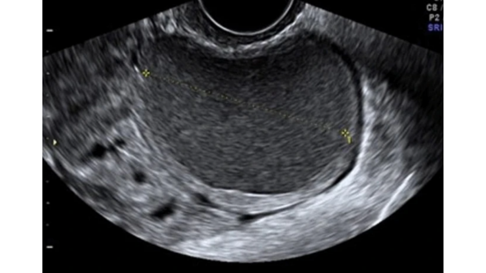 Endometrioma con evidencia del característico doble nivel líquido-líquido